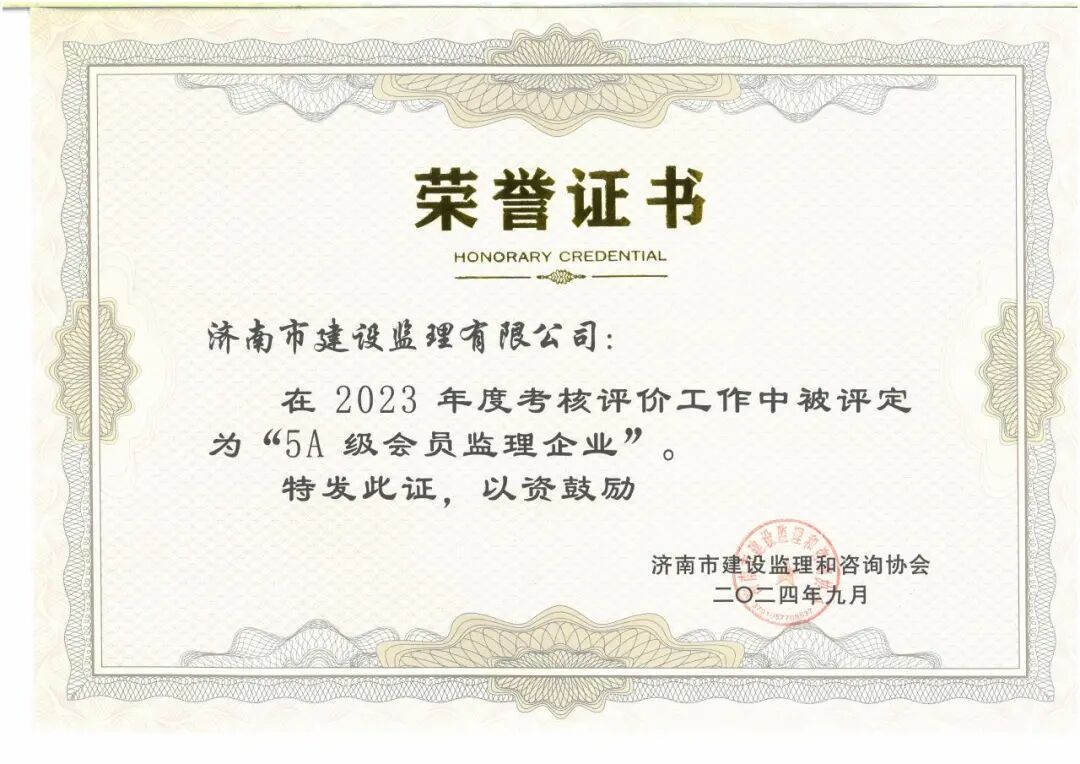 喜報(bào)!濟(jì)南監(jiān)理榮獲中國工程監(jiān)理AAA級(jí)信用企業(yè)及濟(jì)南市5A級(jí)會(huì)員監(jiān)理企業(yè)